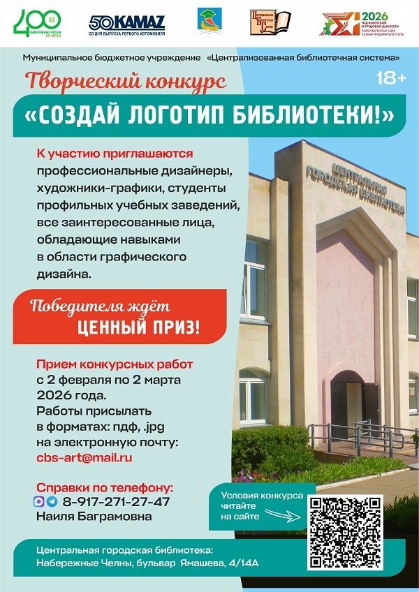 Со 2 февраля по 2 марта Центральная городская библиотека приглашает принять участие в творческом конкурсе «Создай логотип библиотеки!». К участию приглашаются профессиональные дизайнеры, художники-графики, студенты профильных учебных заведений, обладающих соответствующими навыками в области графического дизайна.