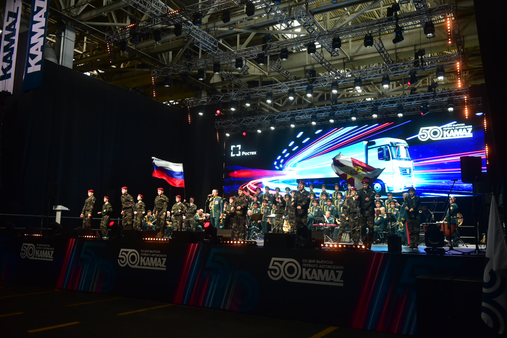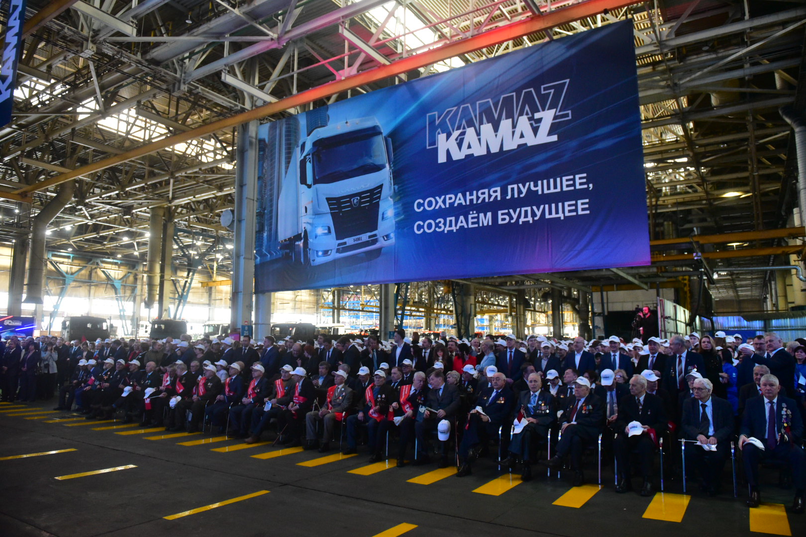Торжественное событие в честь 50-летия со дня выпуска первого грузового автомобиля КАМАЗ развернулось, как и полвека назад, в цехах завода. Рядом с импровизированной сценой развернулась выставка новейших высокотехнологичных автомобилей КАМАЗ, наглядно демонстрирующая современные производственные возможности компании в сфере автостроения.
