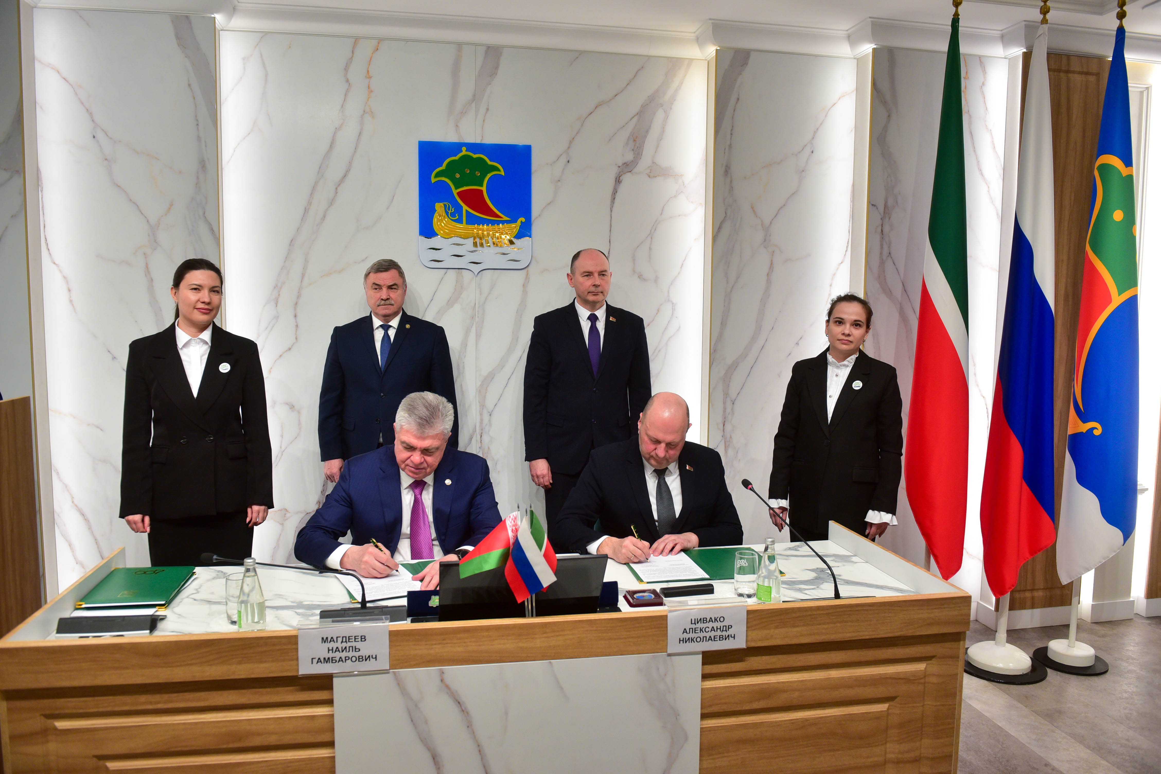 Ключевым событием визита стало подписание Соглашения об установлении дружественных отношений и сотрудничестве с городом Жодино Минской области. Документ скрепили подписями Наиль Магдеев и председатель Жодинского горисполкома Александр Цивако.