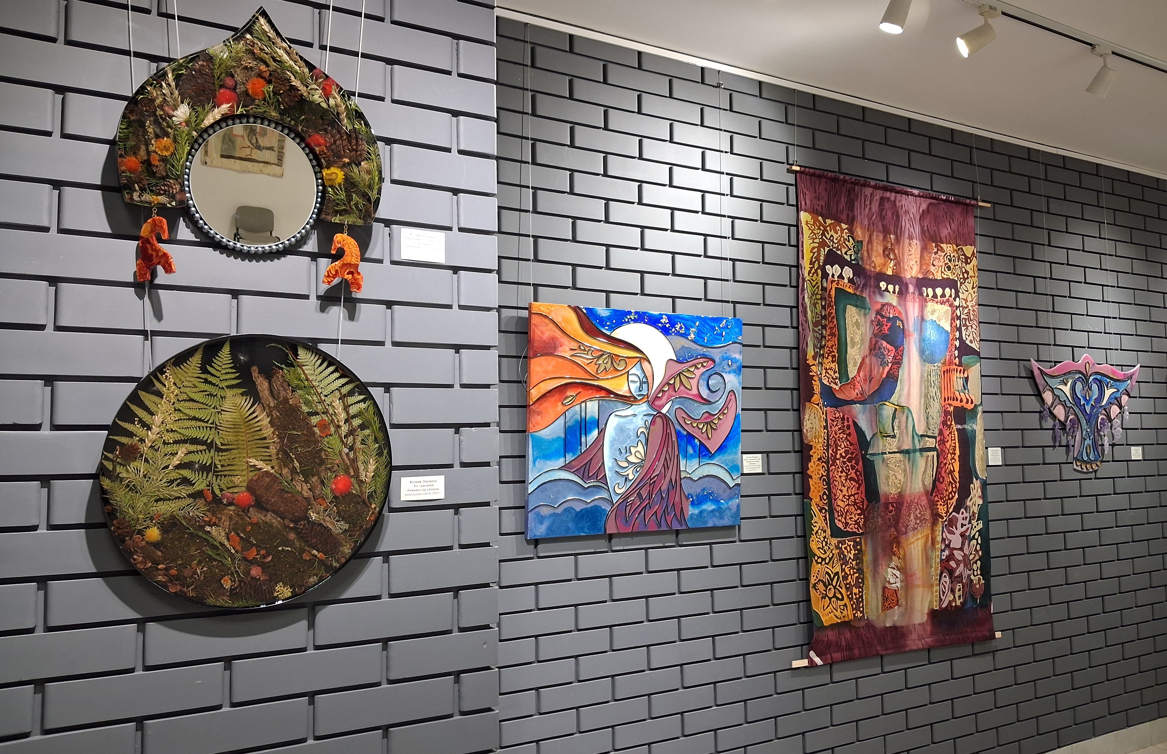 Экспозиция объединила произведения, выполненные в разных техниках графики и декоративно‑прикладного искусства. В пространстве выставки оживают гобелены с видами первозданной природы, графические работы с изысканными растительными узорами, загадочные образы из древних славянских сказаний, воплощённые с помощью эпоксидной смолы и пластика. Каждая работа словно приглашает зрителя отправиться в путешествие по волшебному миру природы, где традиции переплетаются с современными художественными решениями.