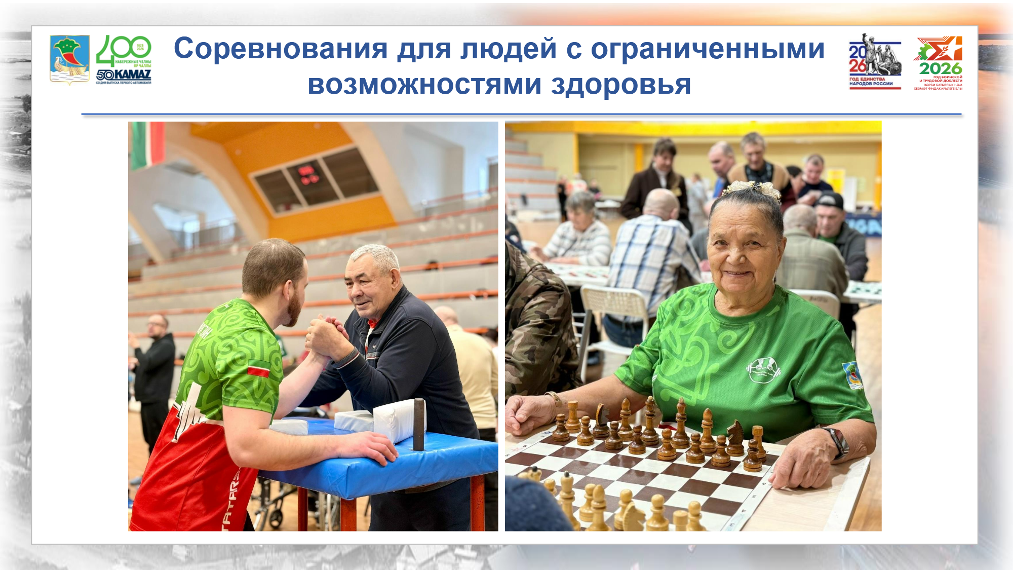 Важным направлением работы является социальная адаптация ветеранов специальной военной операции, которые привлекаются к участию в соревнованиях. В частности, на прошедшем в Казани «Спортивном Кубке Раиса Республики Татарстан» челнинские спортсмены завоевали золото в армрестлинге и серебро в волейболе. Для старшего поколения реализуются программы активного долголетия, включая спартакиаду «Третий возраст» и занятия скандинавской ходьбой.