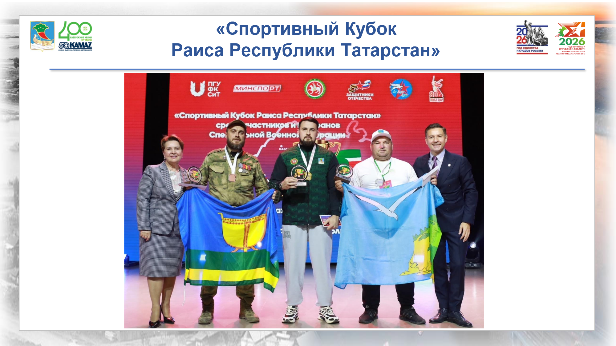 Юбилейный 2026 год начался с высоких результатов на международной и всероссийской аренах. На Кубке России по тяжелой атлетике золотые медали завоевали Зулфат Гараев и Милана Кутякина, серебро у Регины Шайдуллиной, что позволило спортсменам отобраться на Чемпионат Европы в Грузии. Дзюдоист Нияз Билалов стал бронзовым призером турнира «Большой шлем» в Париже.