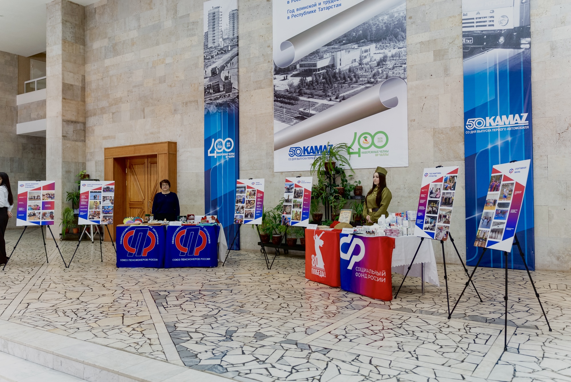 На мероприятии представили тематические экспозиции, посвященные 80-летию Великой Победы, поддержке участников СВО, и выставку уникальных изделий ручной работы Центра общения старшего поколения.
