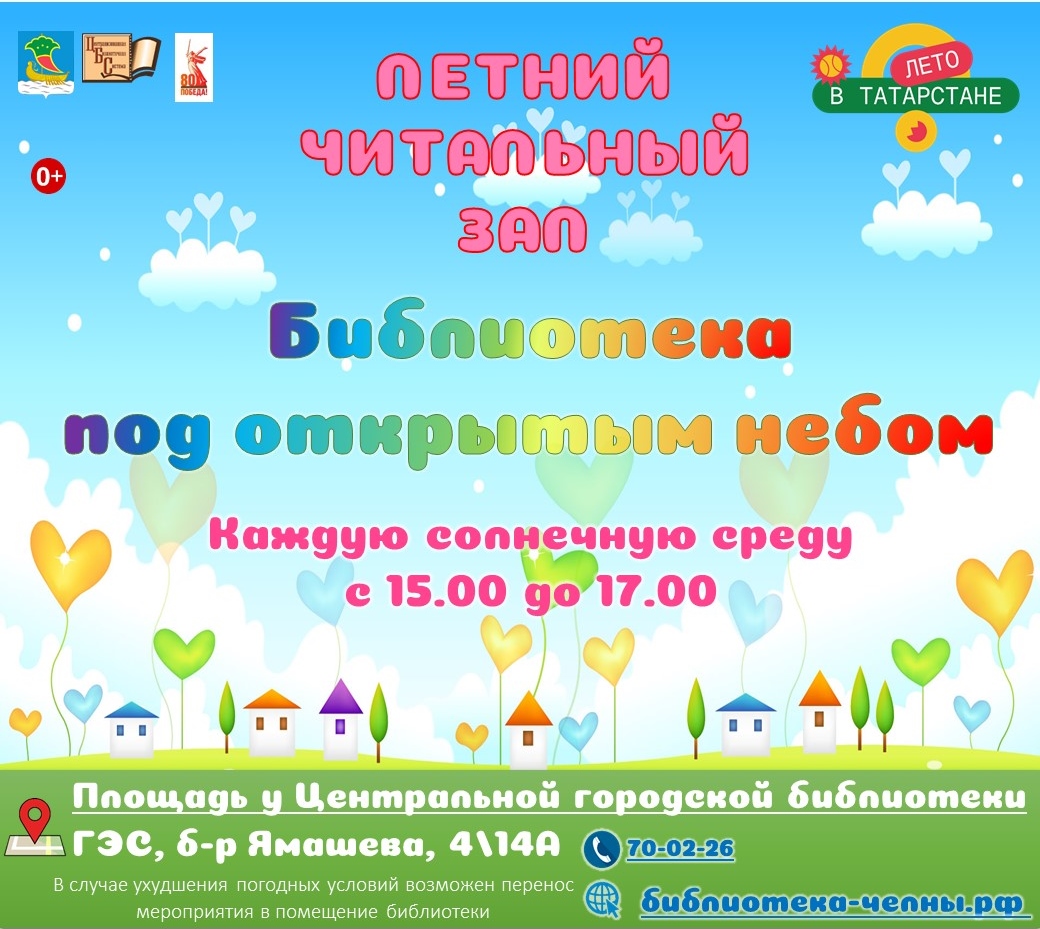 Китап ярату, китап уку, гыйлем җыю — татар халкының иң гүзәл сыйфатларыннан берсе. Чаллылыларны «Ачык һавада китапханә» дигән җәйге уку залына чакыралар.