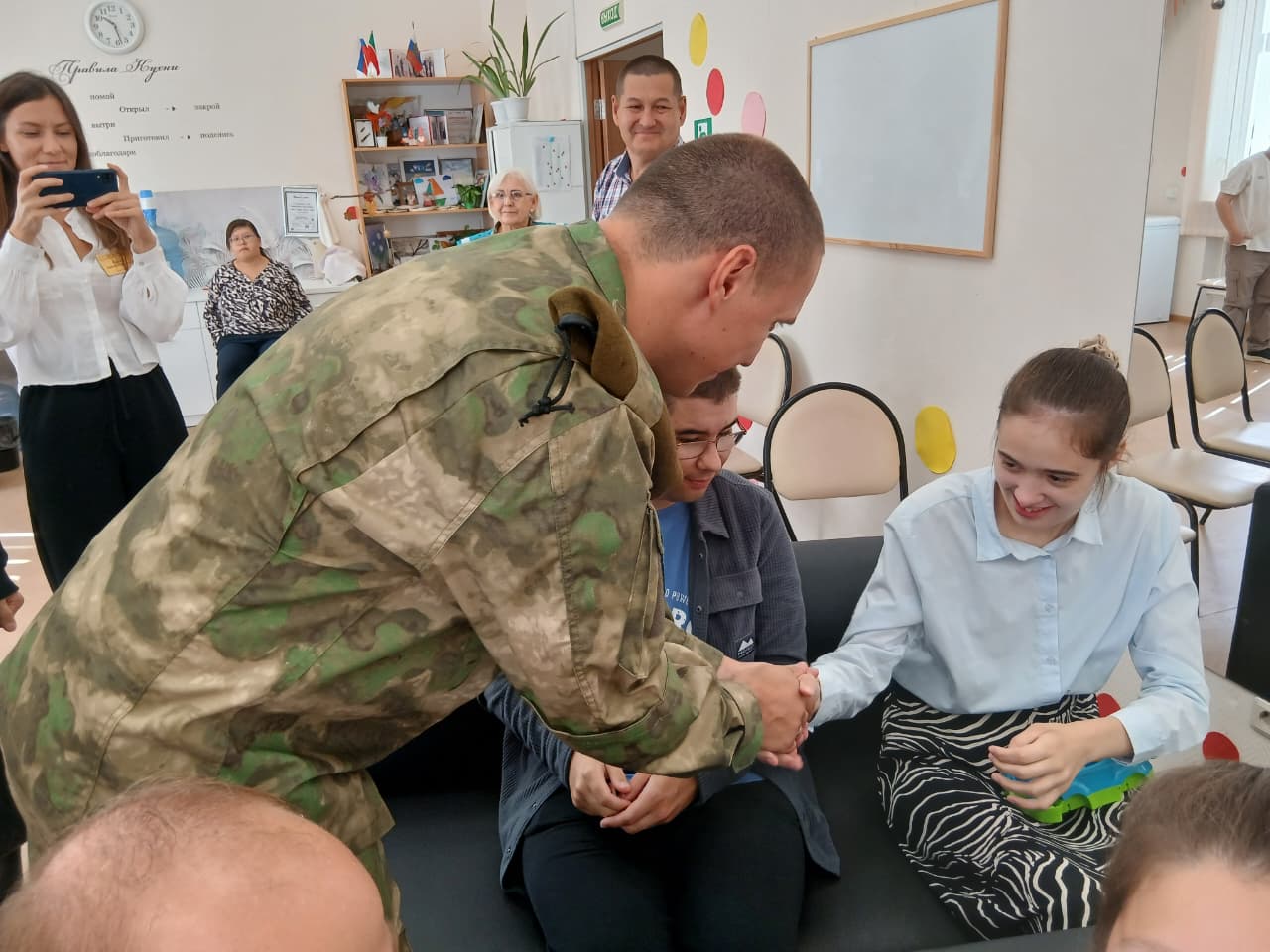«Ышаныч» үзәгендә тәрбияләнүчеләр өчен очрашу үткәрелде. Алар махсус хәрби операциядә катнашкан хәрби хезмәткәр Тимур Нусратов белән очрашты.