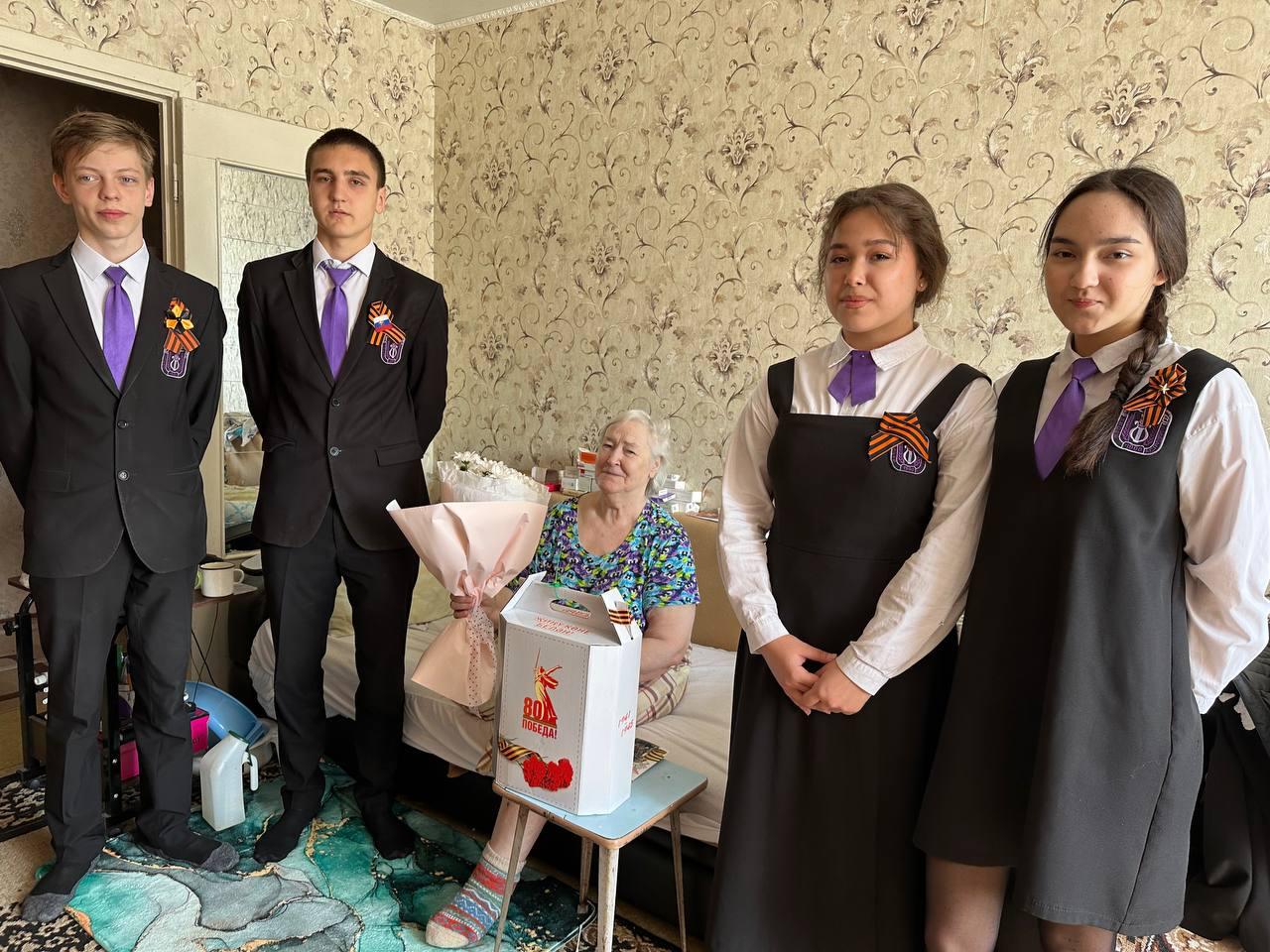 Учащиеся лицея имени А.С. Пушкина поздравили ветеранов накануне Дня Победы. Людмила Егоровна Мавренкова, Анастасия Михайловна Казанцева, Татьяна Семеновна Куклова, Анна Петровна Афонина и Васига Сираевна Набиуллина получили подарок и открытки от Раиса Республики Татарстан Рустама Минниханова и мэра города Наиля Магдеева.