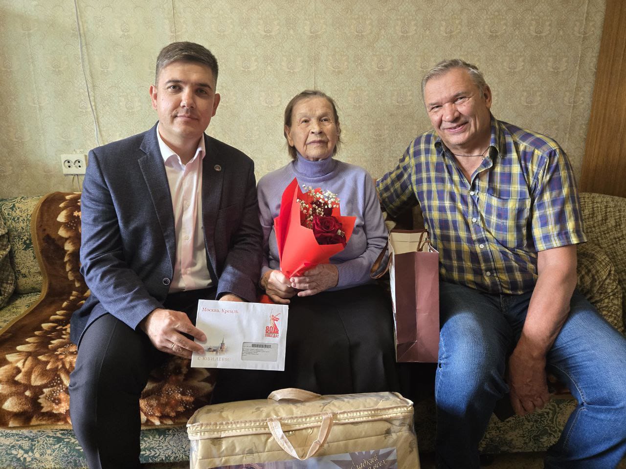 Ветерана поздравили глава Центрального района Фидарис Хабибуллин и председатель ТОС "17 комплекс" Владимир Ртищев.
