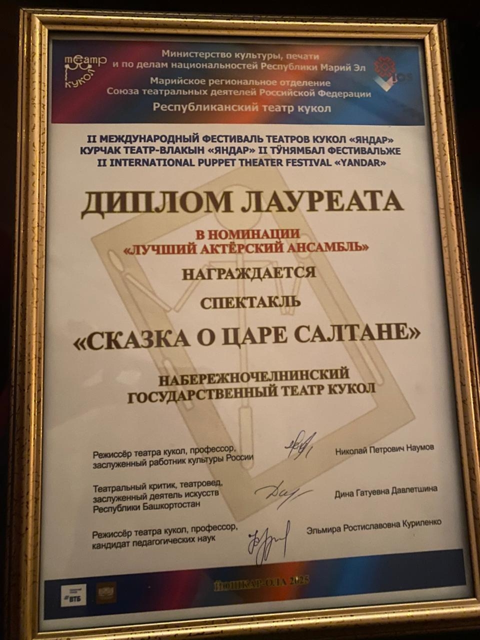 Артистлар «Иң яхшы актерлар ансамбле» номинациясендә диплом белән бүләкләнде.